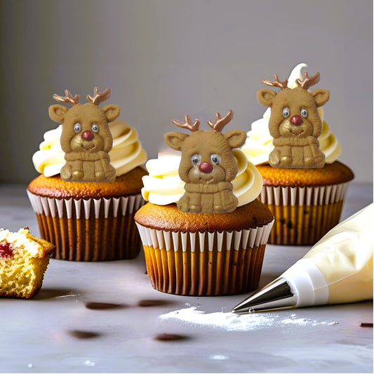 6 Cheerful Christmas Reindeer Edible Cake Cupcake Toppers