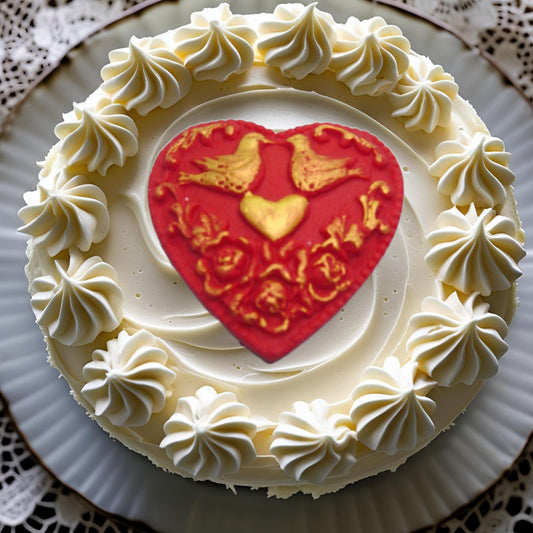 4 Valentines Glittered Hearts with Doves Vegan Cupcake Toppers
