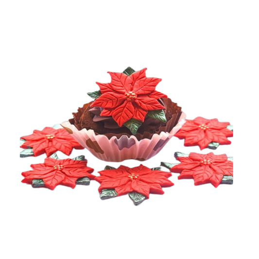6 Poinsettia Christmas Flowers Cupcake Xmas Cake Decorations