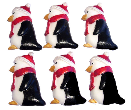 6 Large Penguins Christmas Edible Cupcake Cake Decorations
