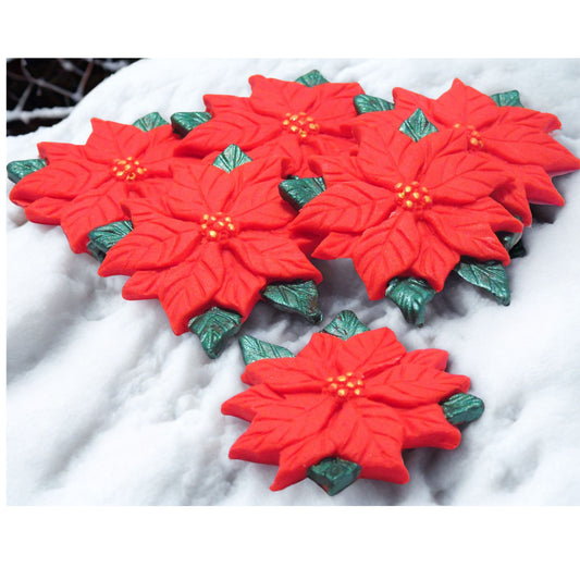 6 Poinsettia Christmas Flowers Cupcake Xmas Cake Decorations