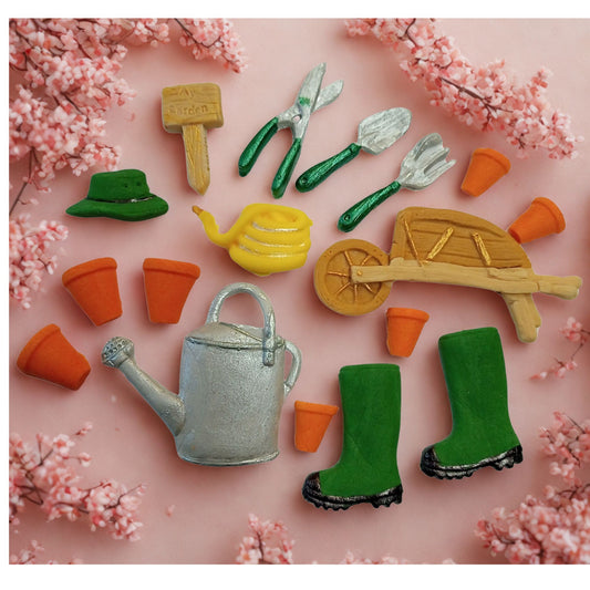 Gardening Set Vegan Cake Decorations 18 Garden Edible Toppers