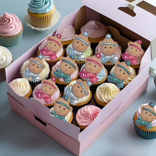 12 Vegan Coloured Teddies Baby Shower Edible Cupcake Toppers