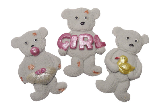 Set 3 Girl Teddies Baby Shower Cake Cupcake Toppers