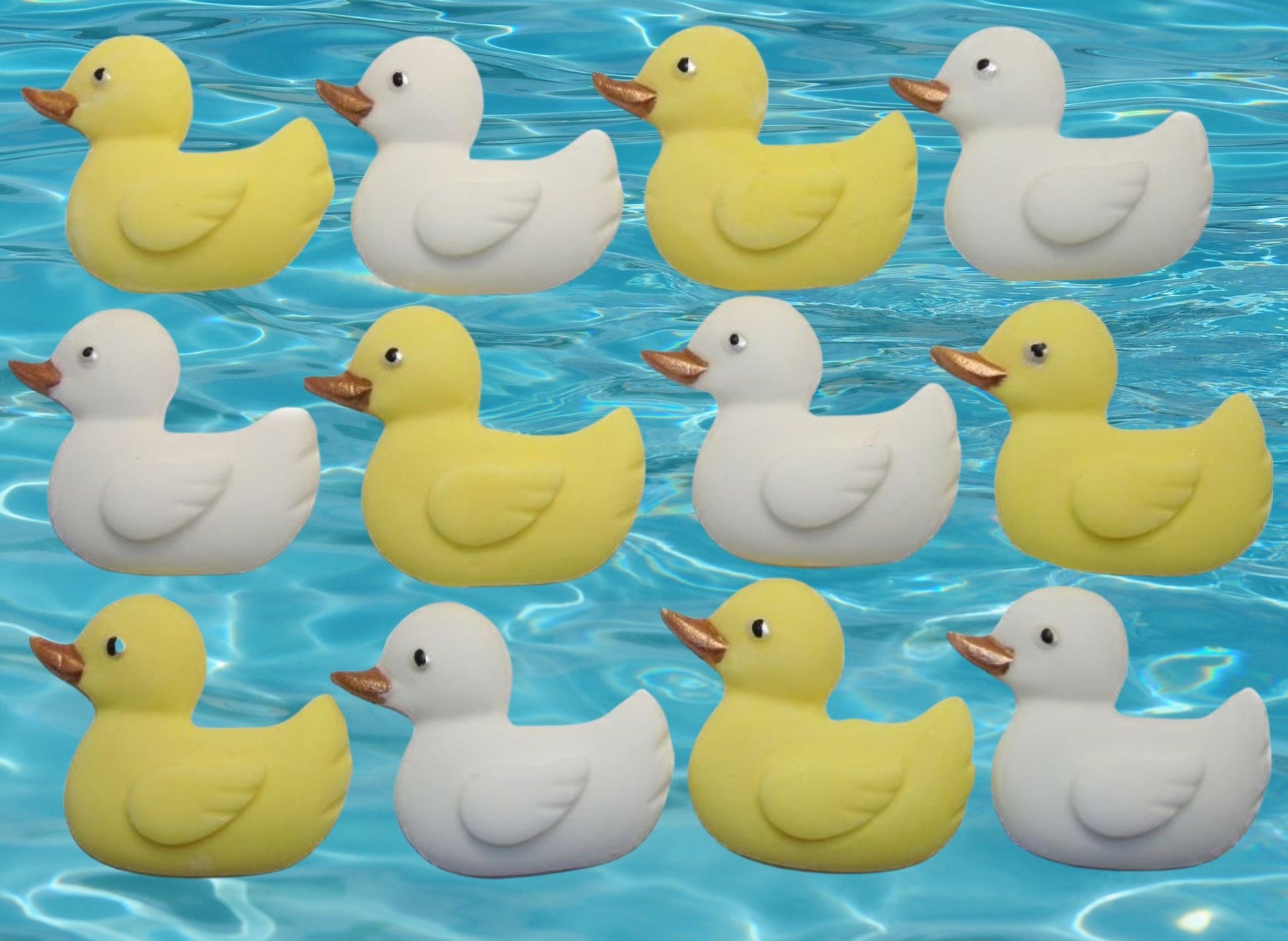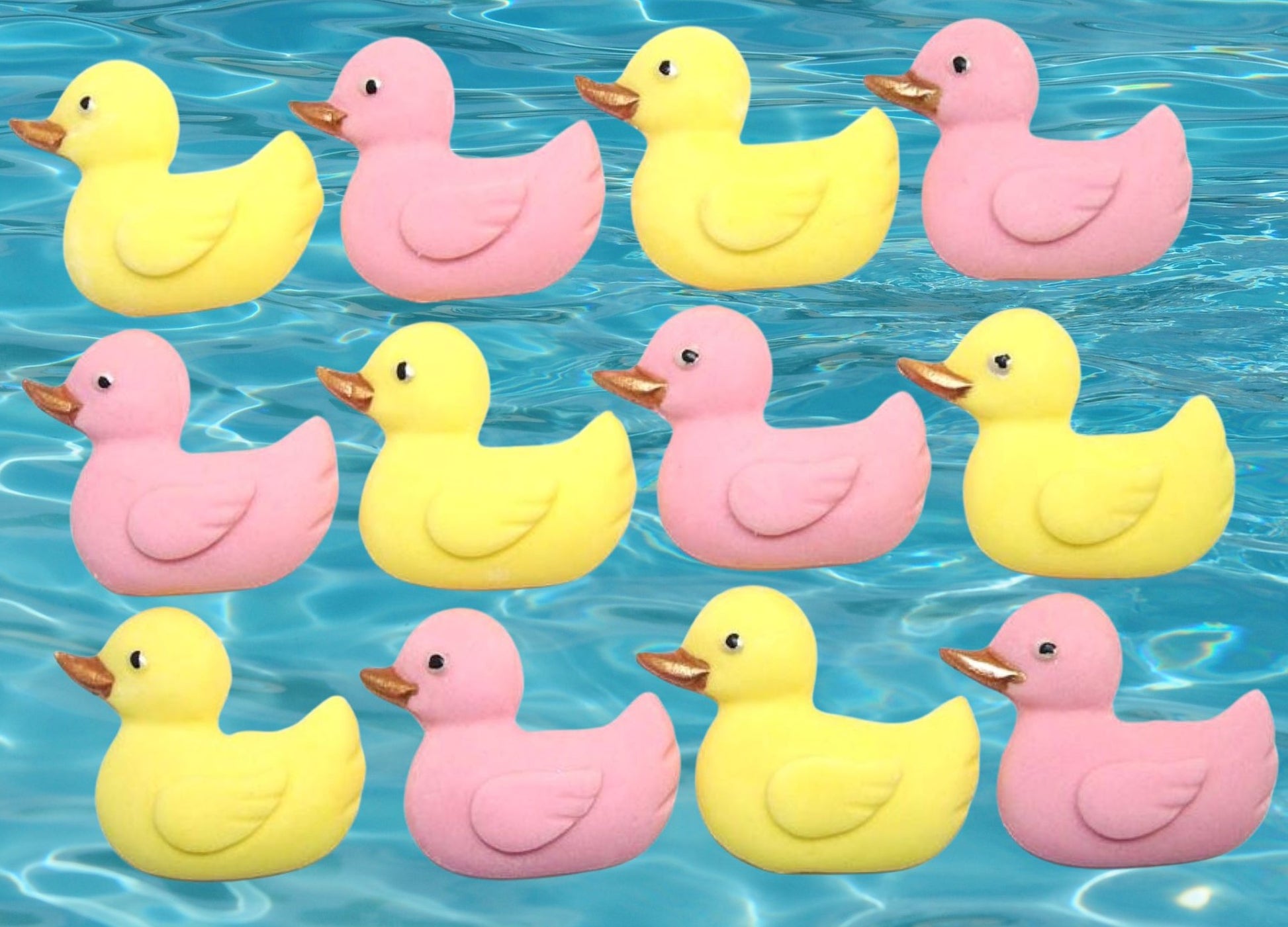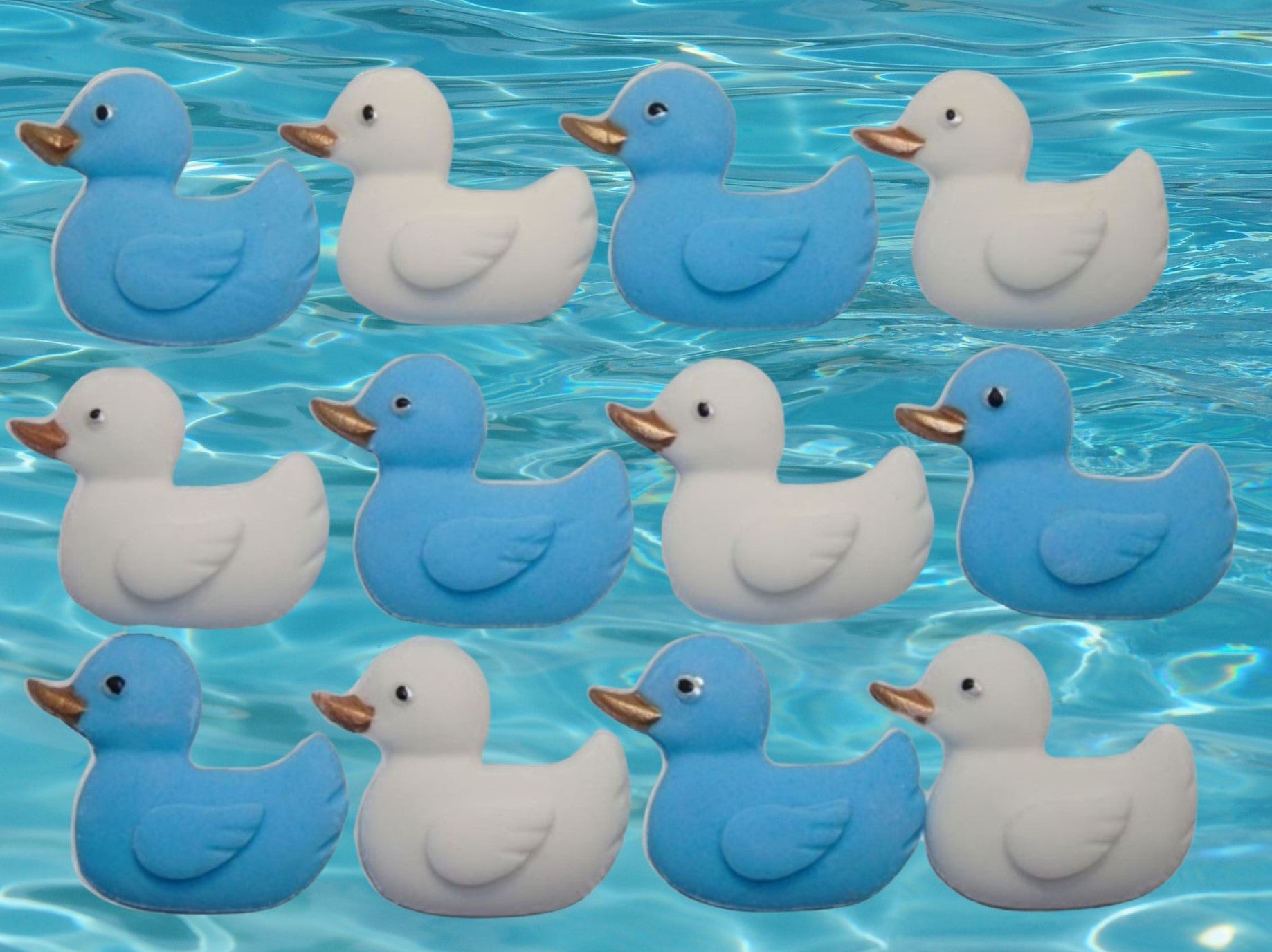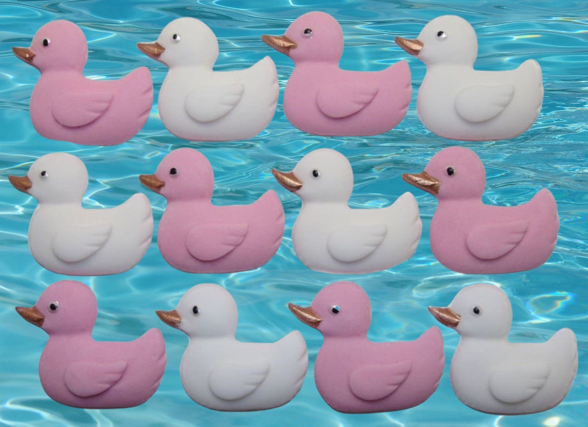 - Includes 12 coloured duck toppers per pack