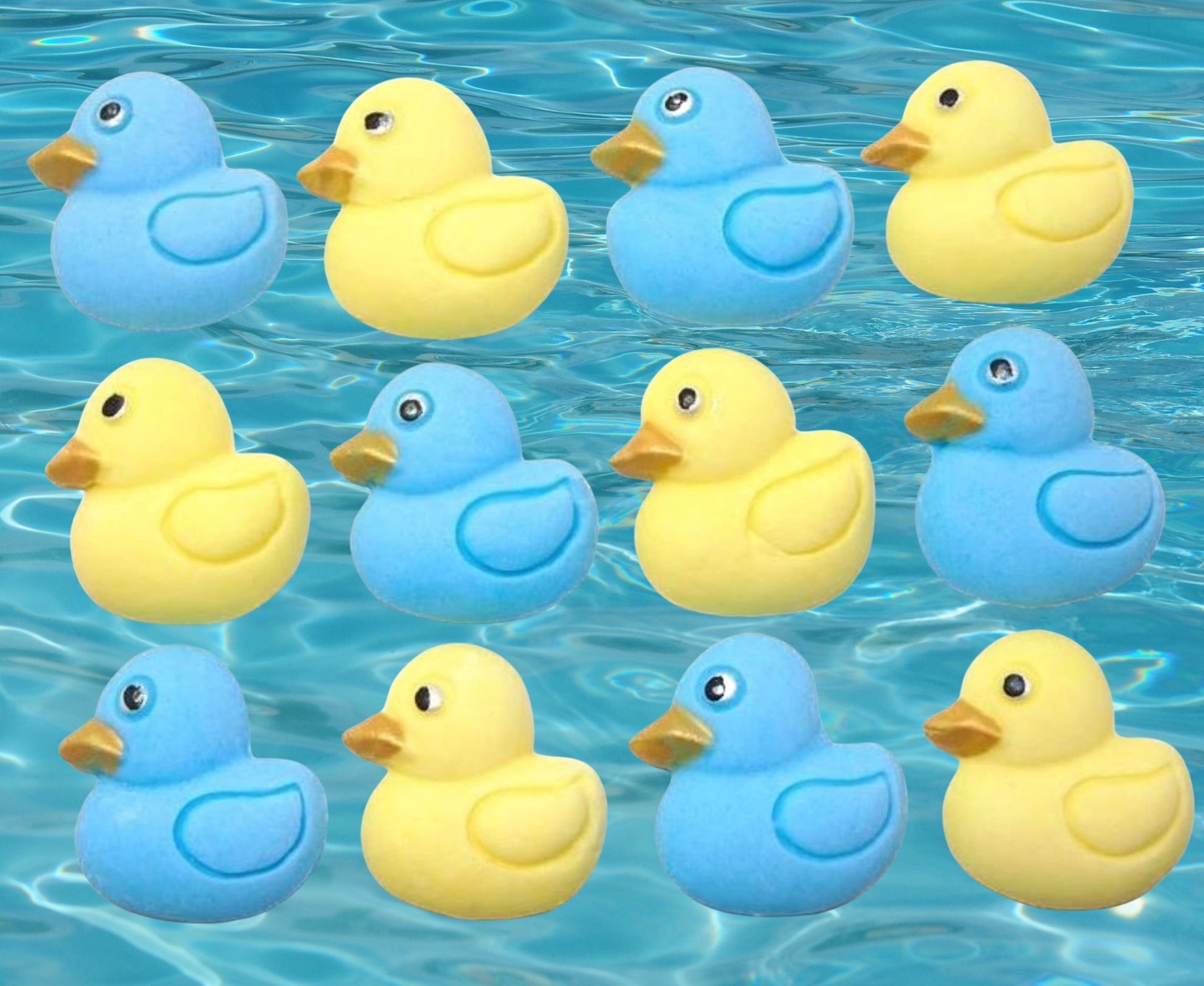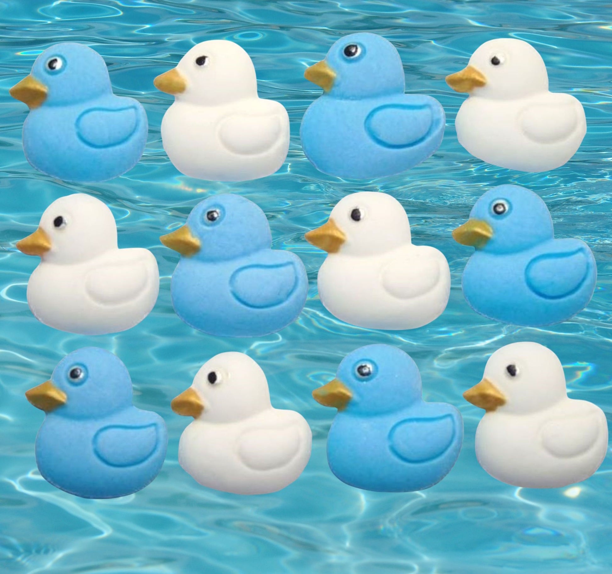 Delight guests at baby showers and birthdays with our 12 handmade edible small coloured duck cupcake toppers. Available in single and mixed colour combinations such as blue, pink, yellow, and white, these edible duck toppers add a cute touch to your cupcakes and cakes.