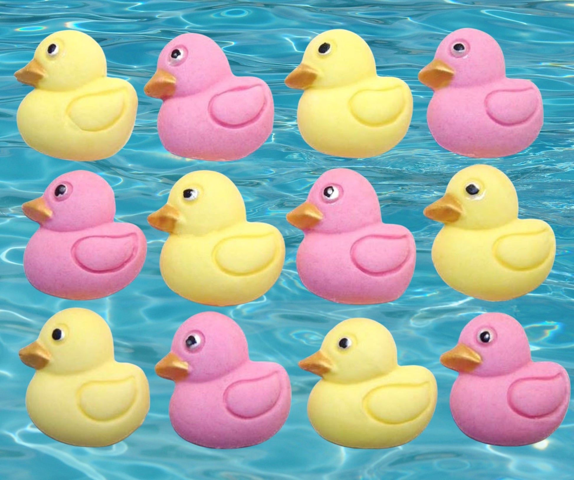12 Small Coloured Ducks Baby Shower Edible Cupcake Toppers