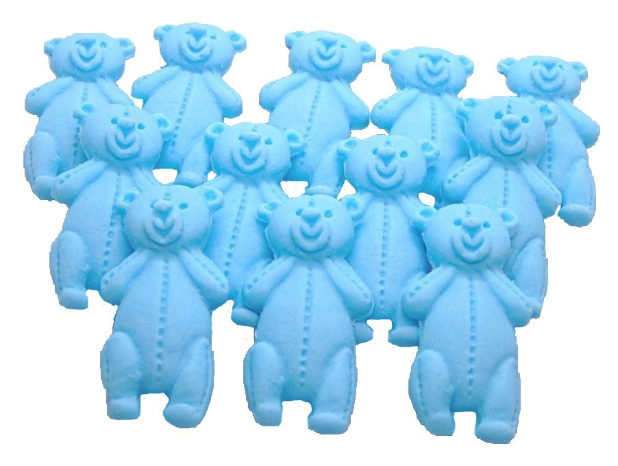 Add a delightful touch to your cupcakes and cakes with our 12 handmade edible little teddys cake toppers. These coloured teddy cupcake toppers are perfect for baby showers, christenings, and first birthdays.