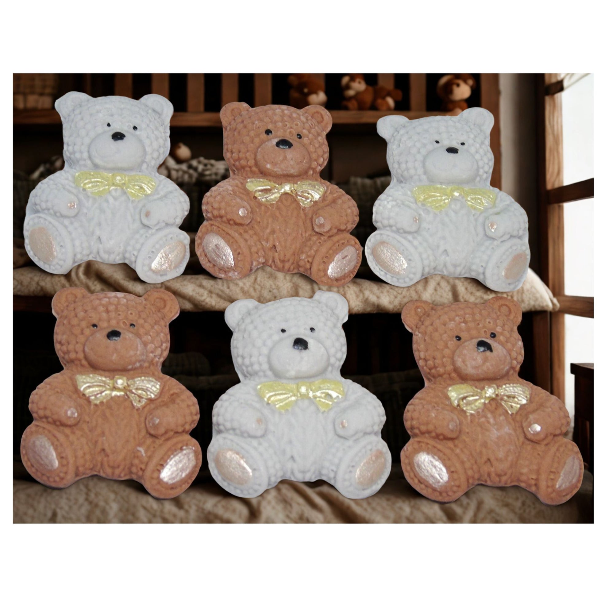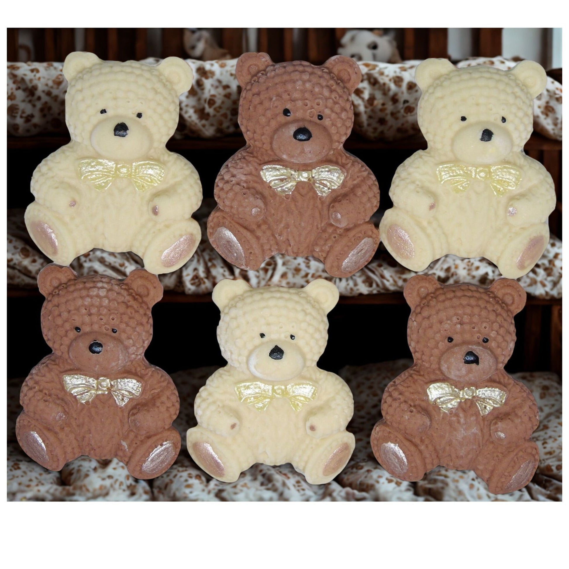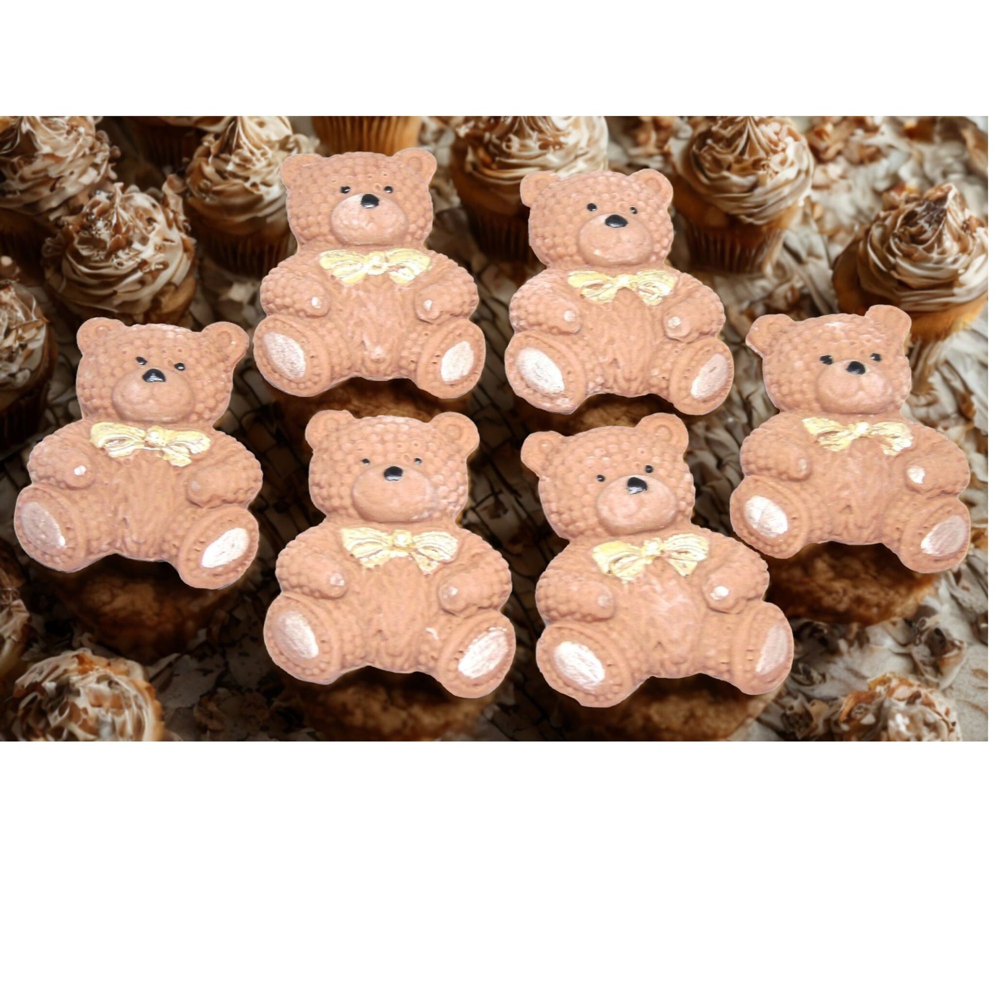 6 Handmade Edible Baby Teddy Cupcake Toppers - Vegan, Dairy-Free, Gluten-Free