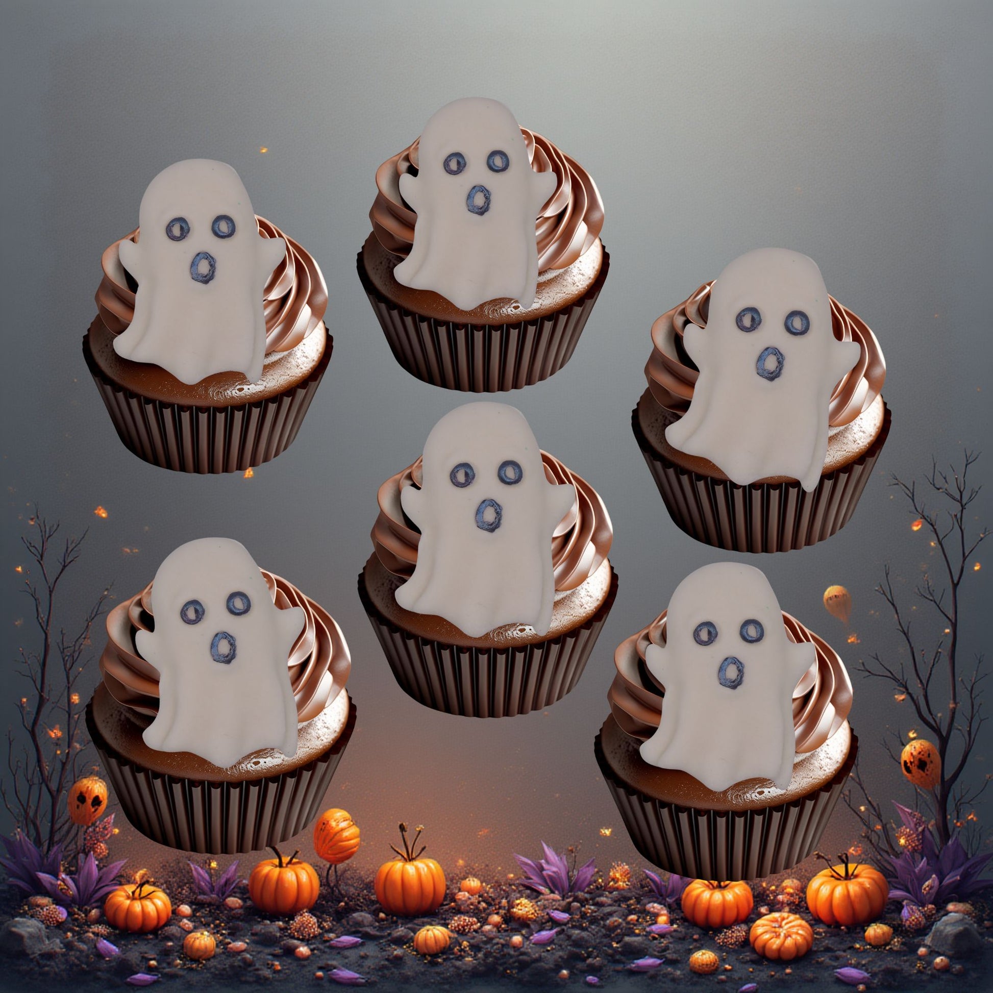 Celebrate Halloween with these adorable edible Ghosts edible toppers.! Perfect for adding a unique and festive touch to your Halloween treats,