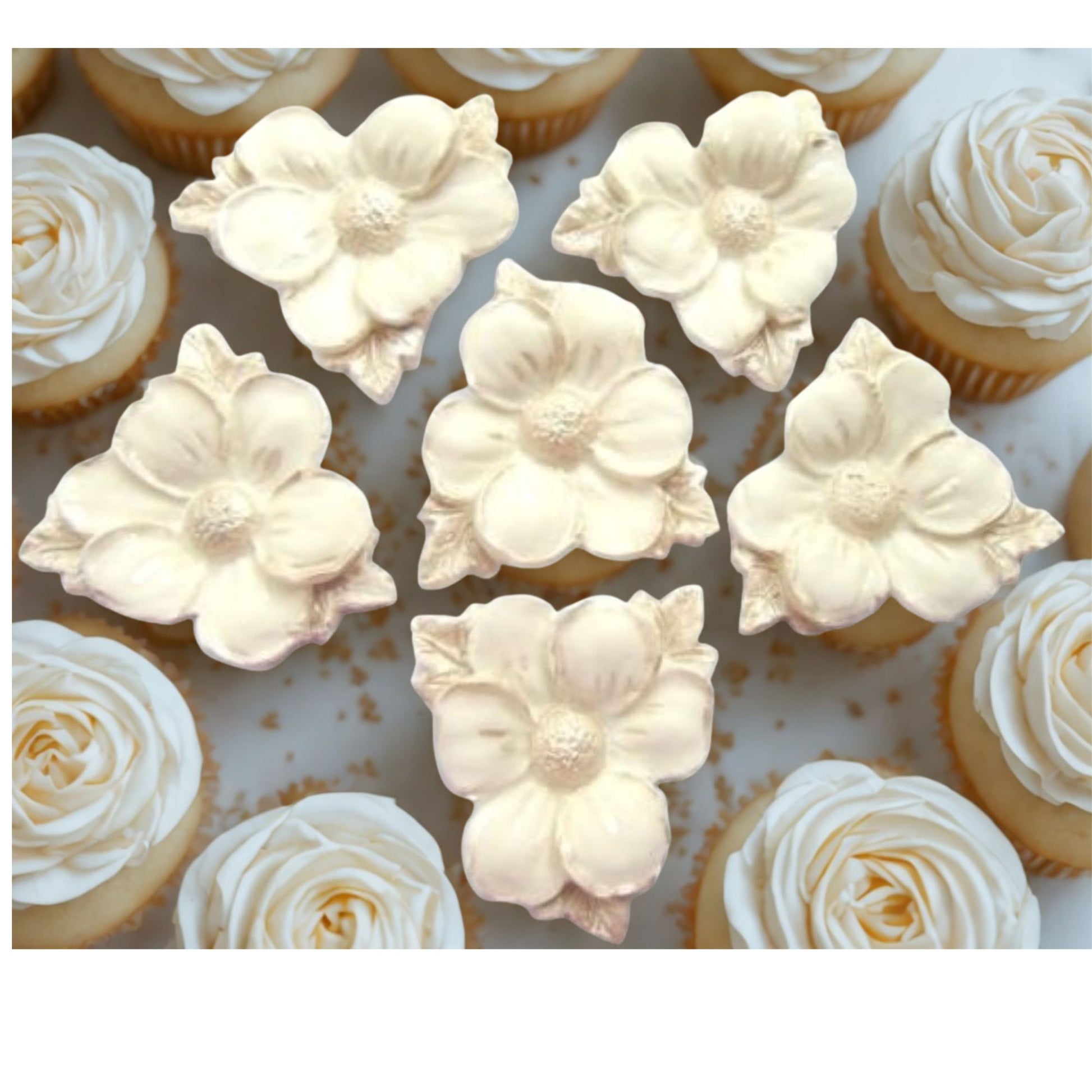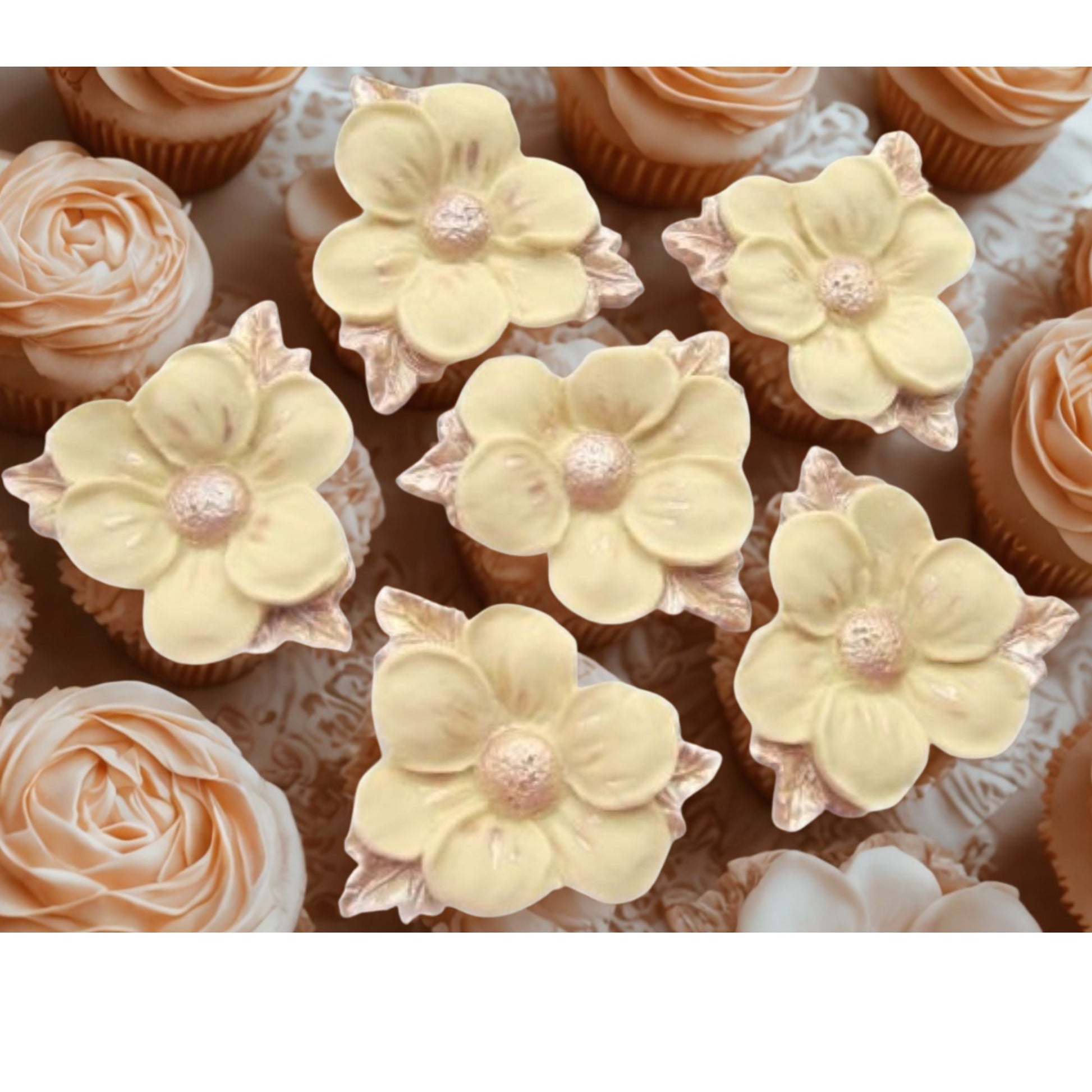 6 Handmade Edible Sugar Paste Flower Cake Toppers - Vegan, Dairy-Free, Gluten-Free