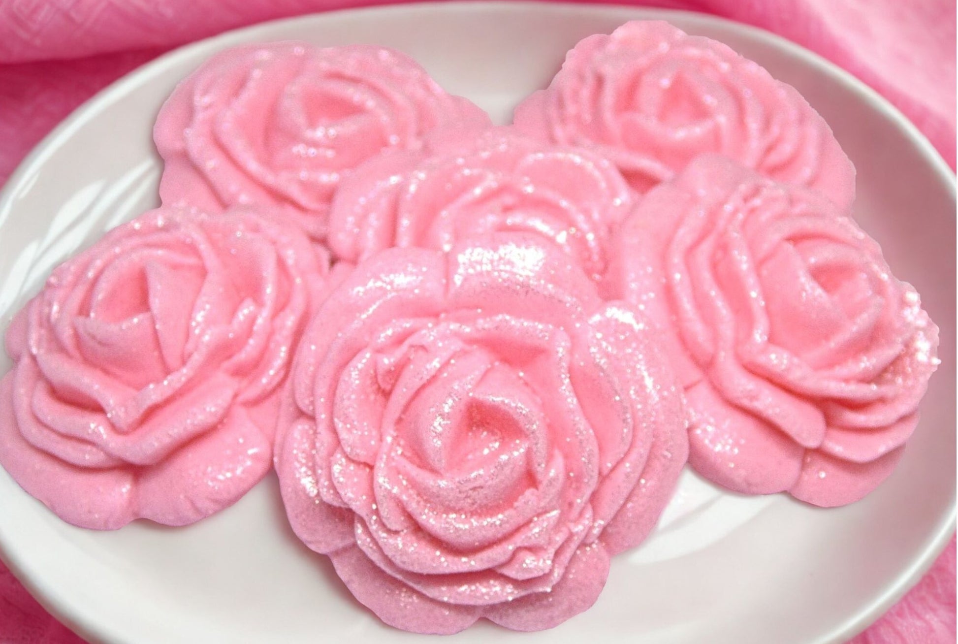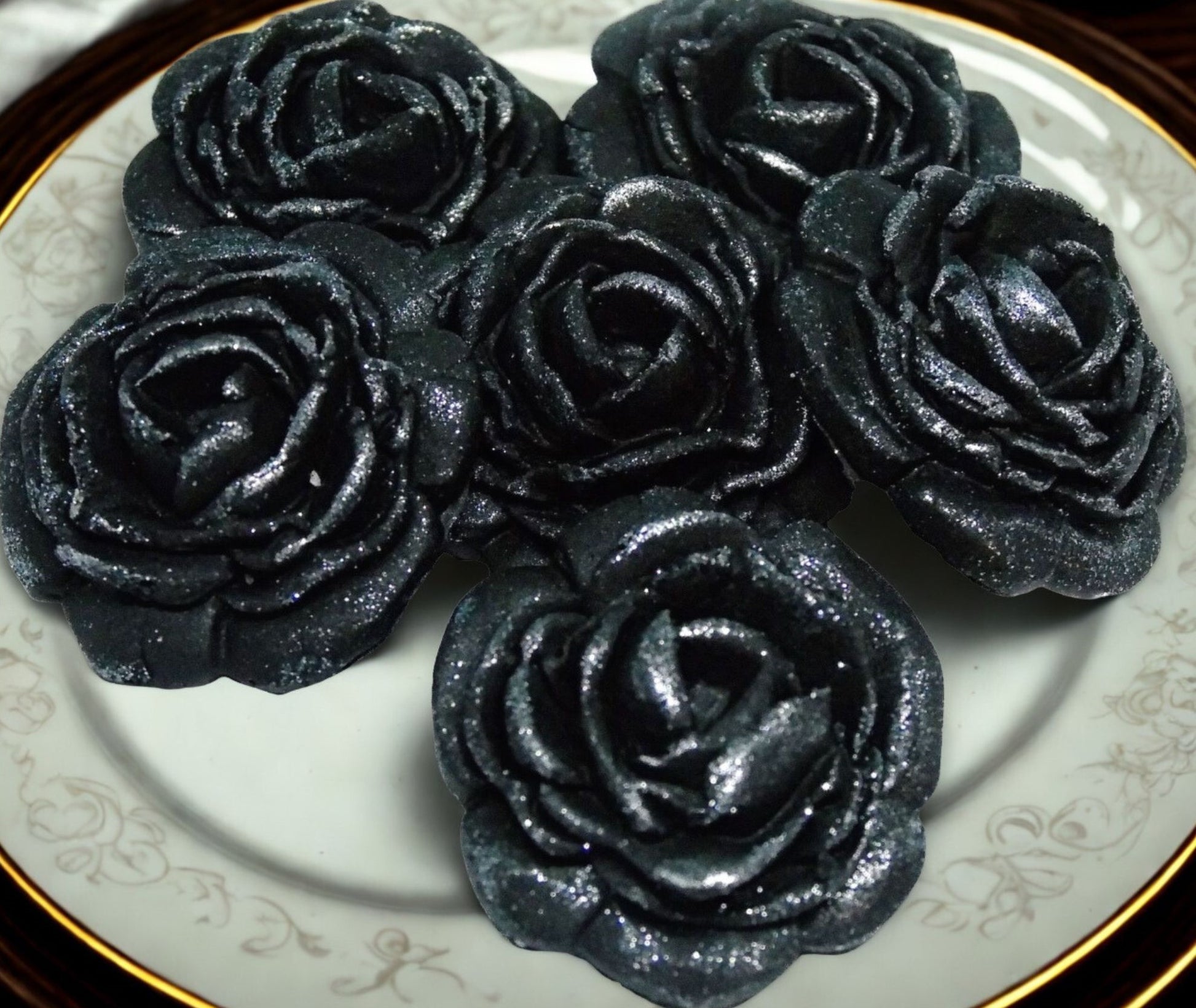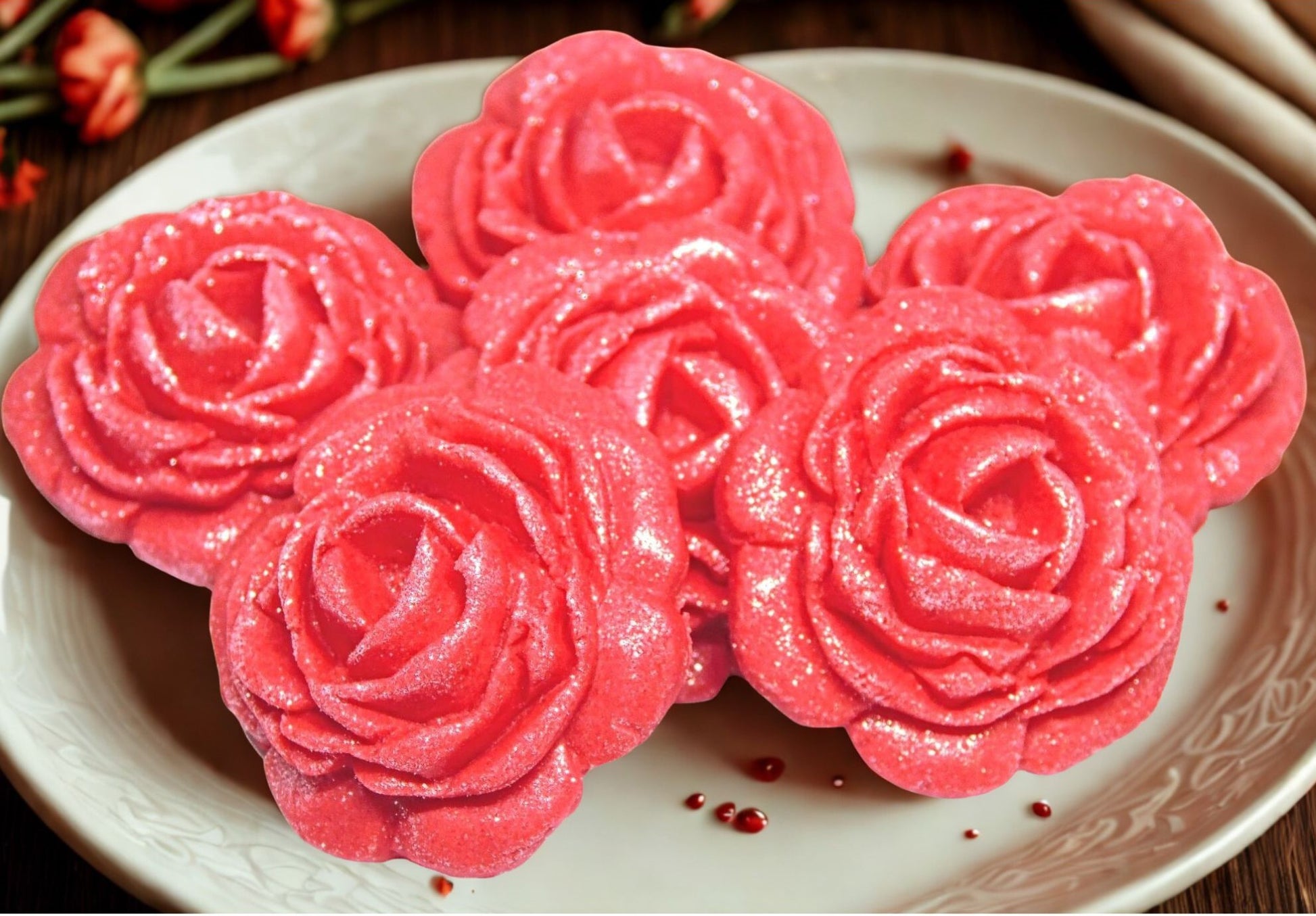6 Handmade Edible Large Glittered Rose Cake Toppers - Vegan, Dairy-Free, Gluten-Free