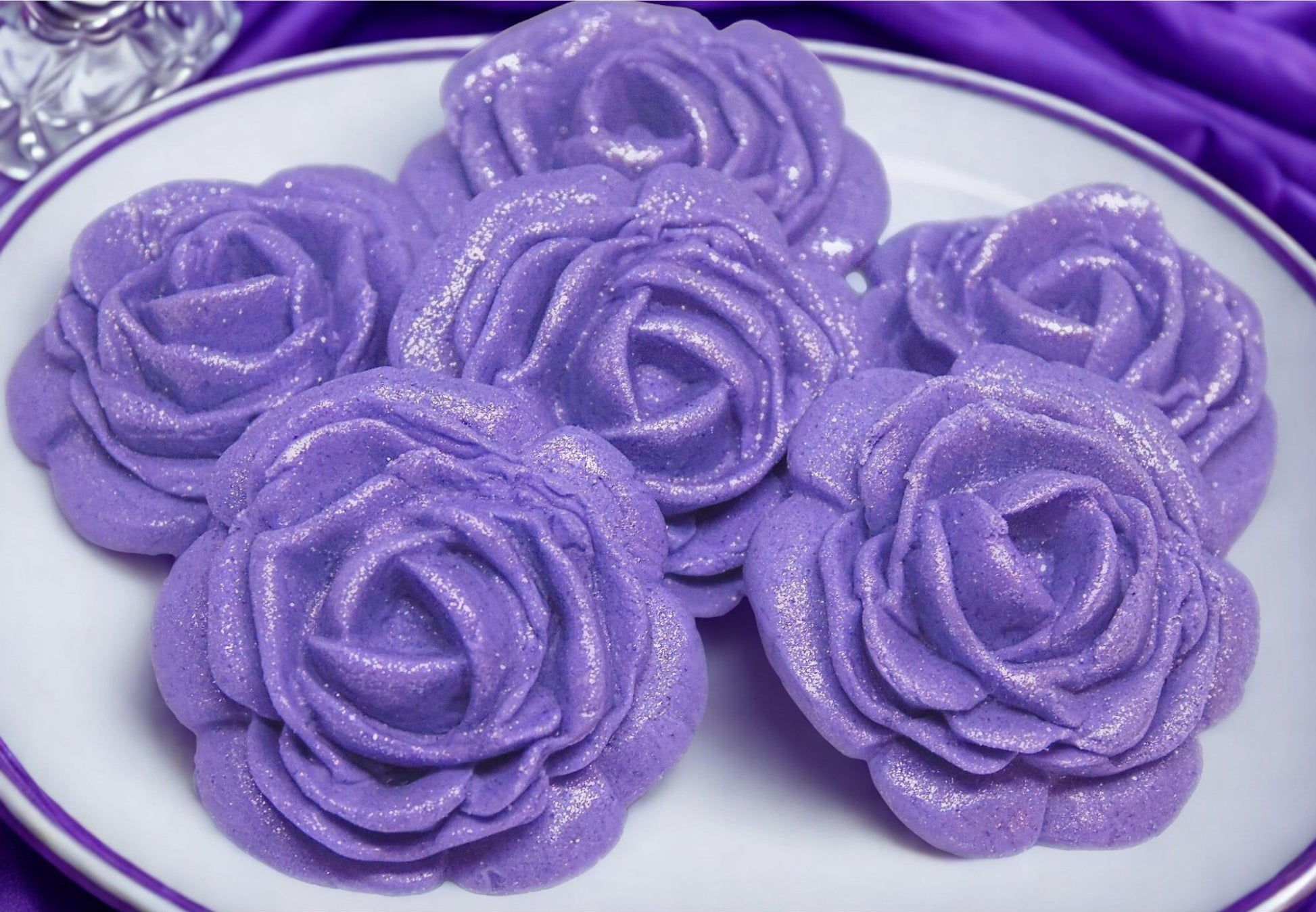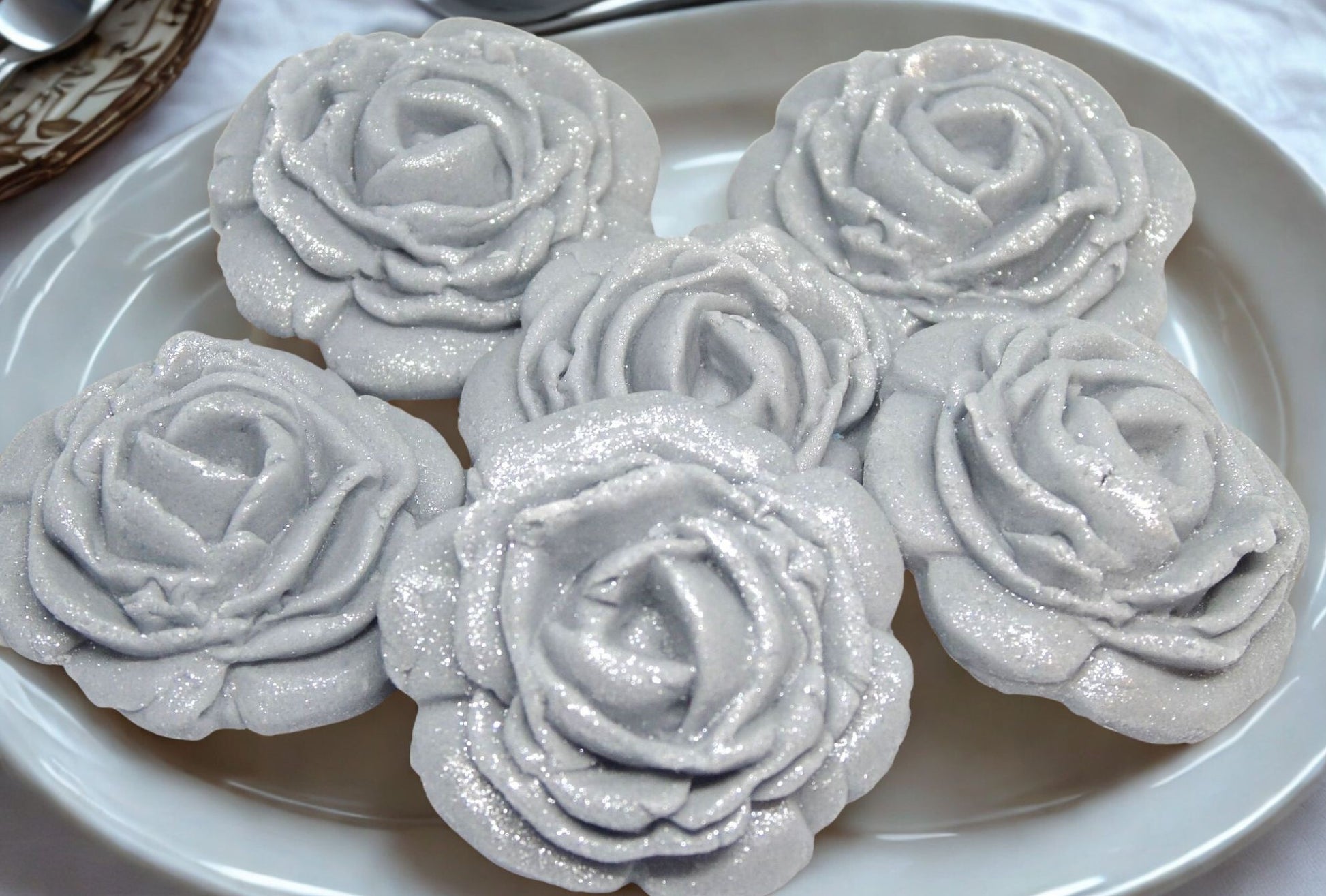 Elevate your cakes and cupcakes with our 6 handmade edible glittered rose topper decorations. Perfect for weddings, birthdays, and other special occasions, these large roses are available in a variety of colours. Made from sugar paste then glittered so they can shine.