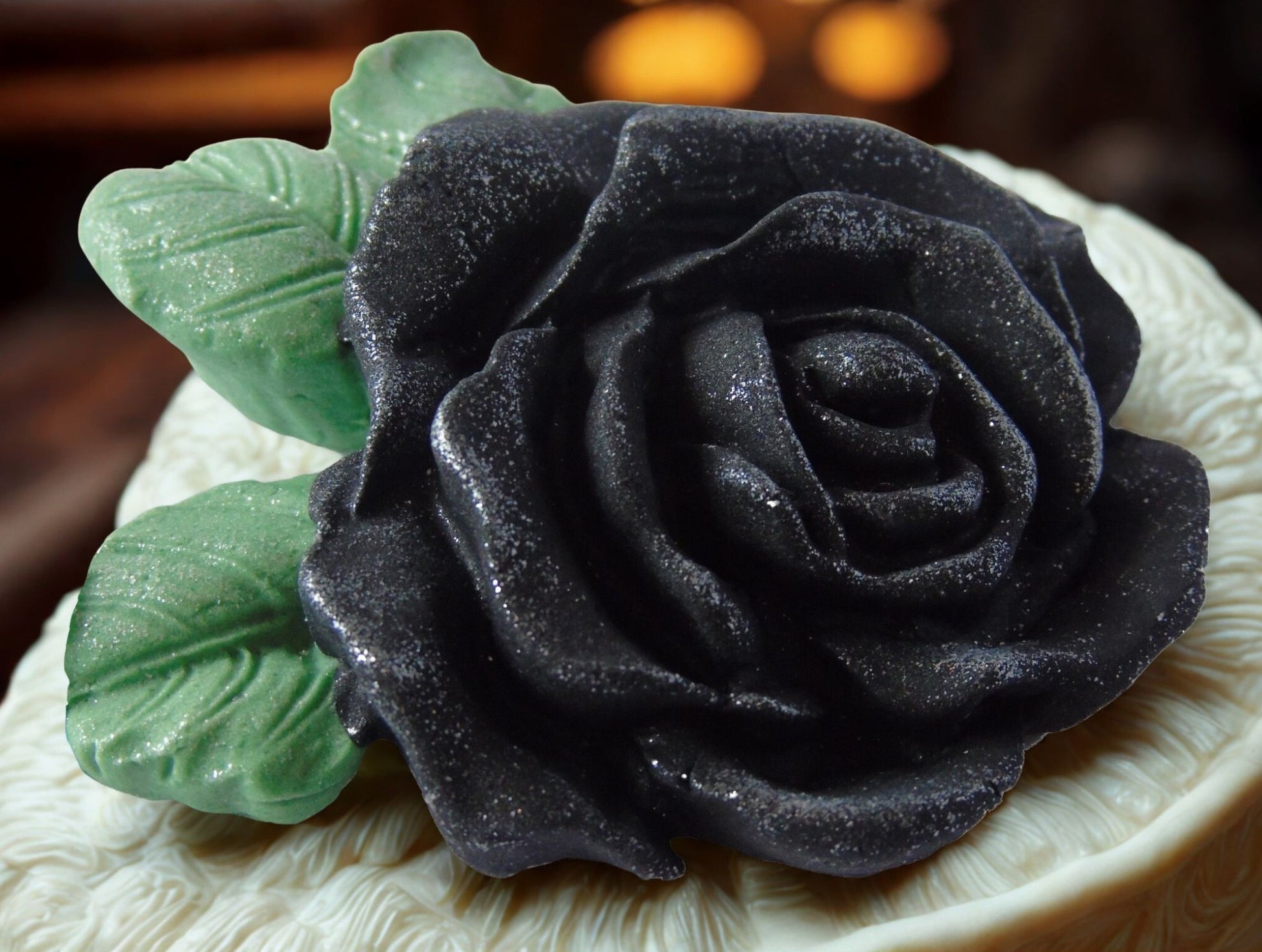 The intricate design and vibrant colour of the rose, coupled with a shimmering glitter finish, make this rose cake topper a standout feature on any cake. Its size and detail make it ideal for larger cakes or as a striking focal point on multi-tiered creations and easy to apply.