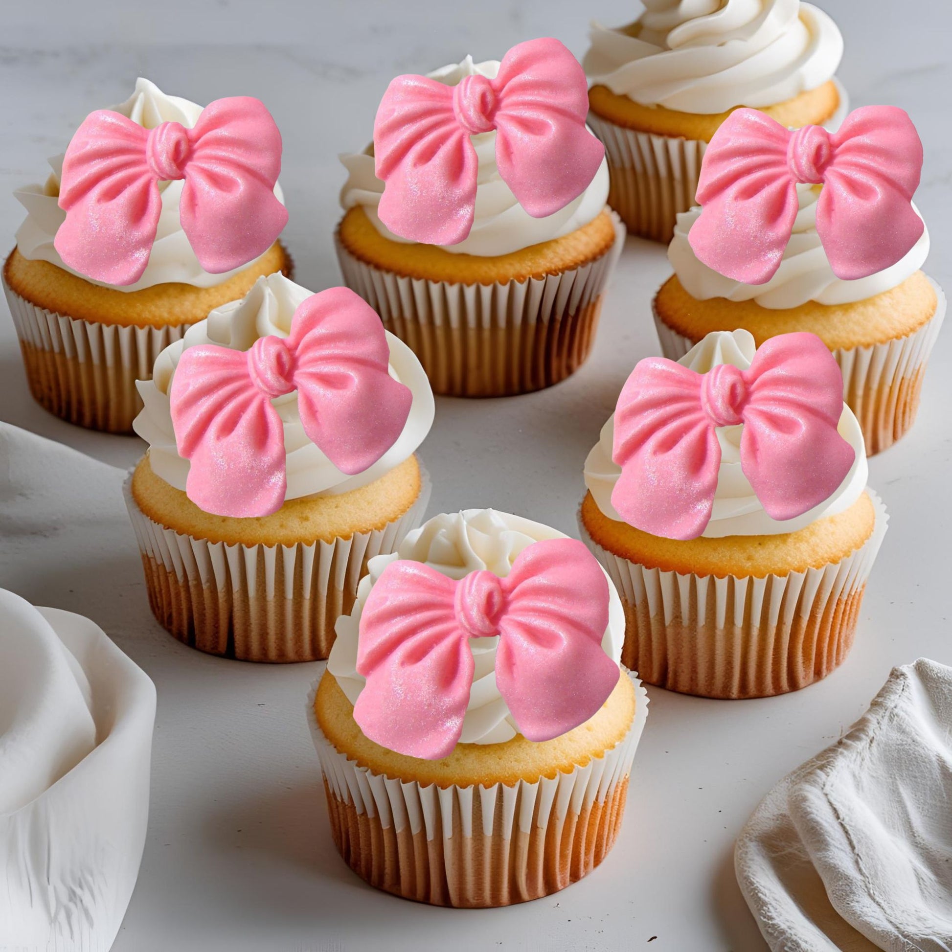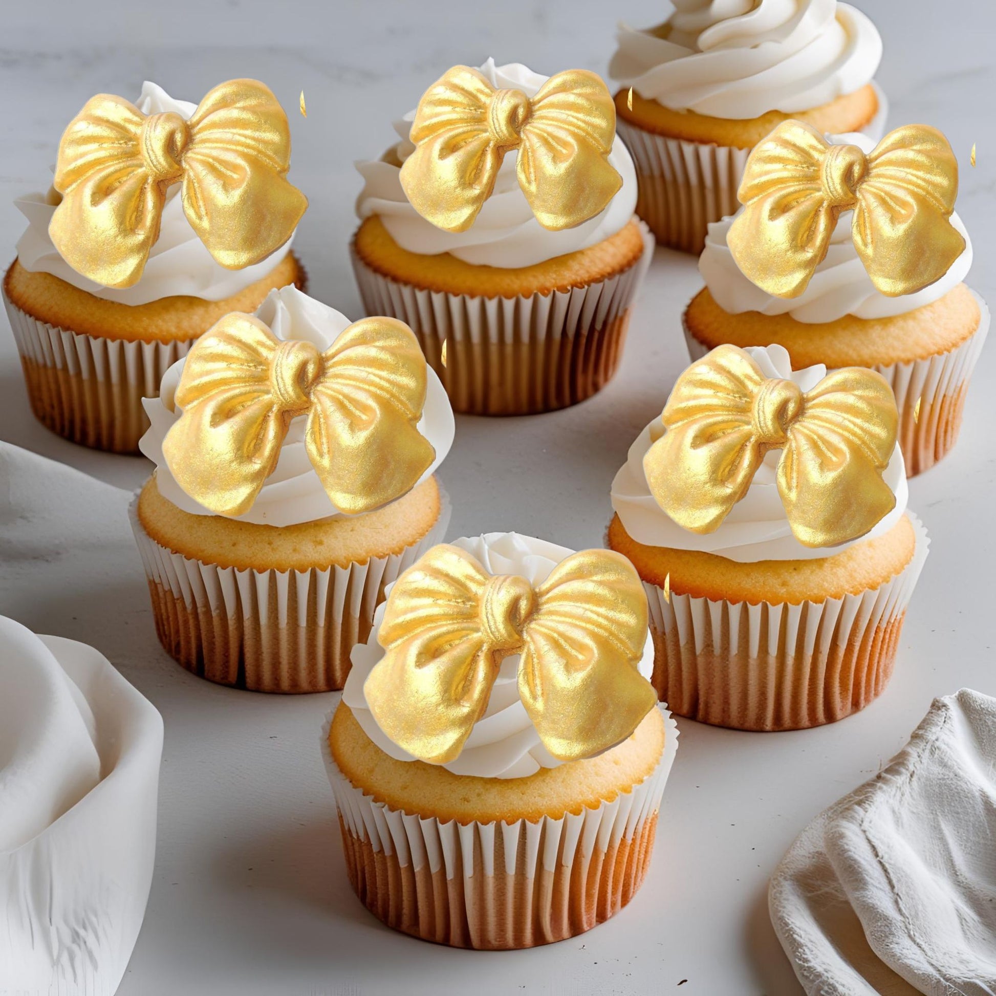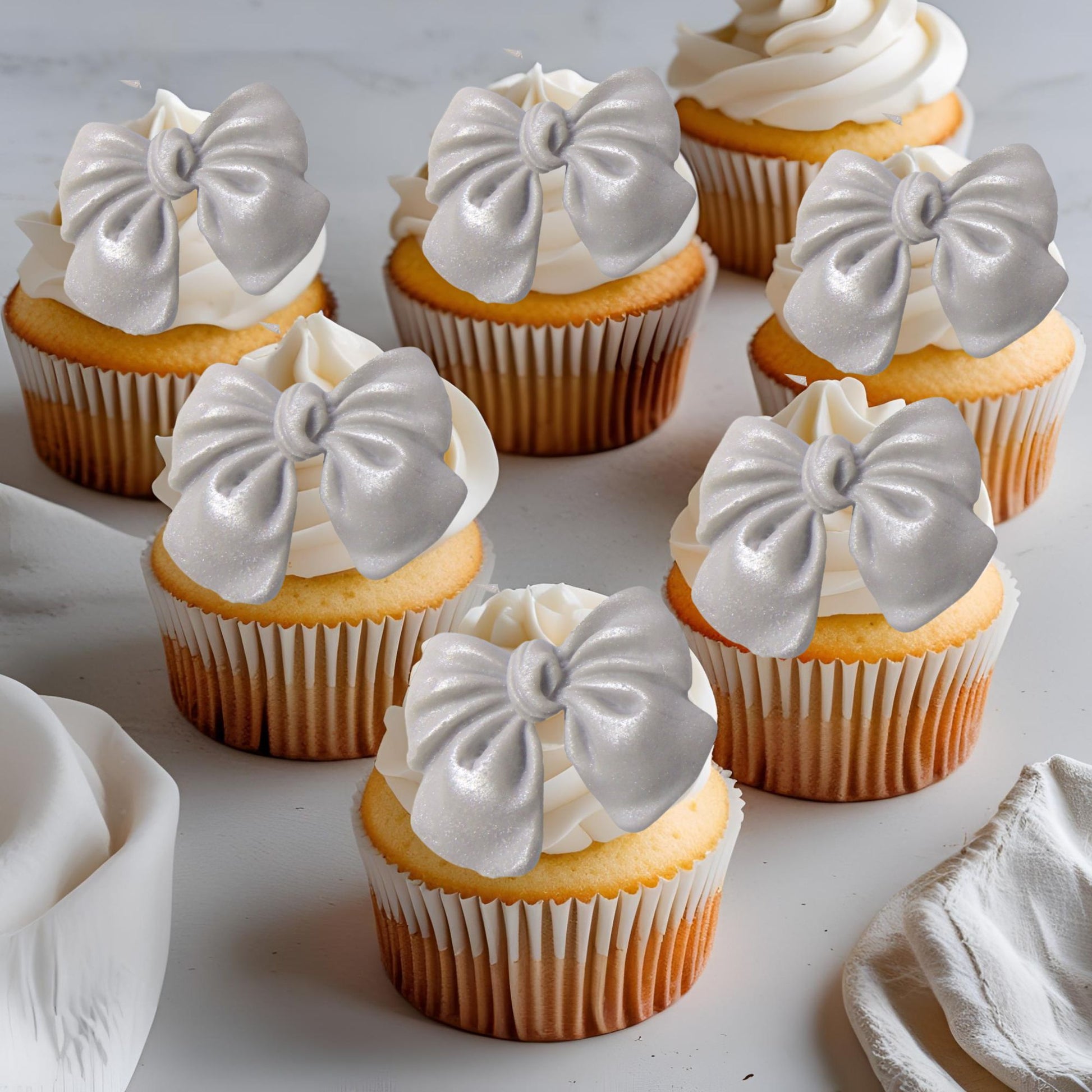 Add a touch of elegance to your cakes and cupcakes with our 6 handmade edible glittered bow cupcake toppers.
