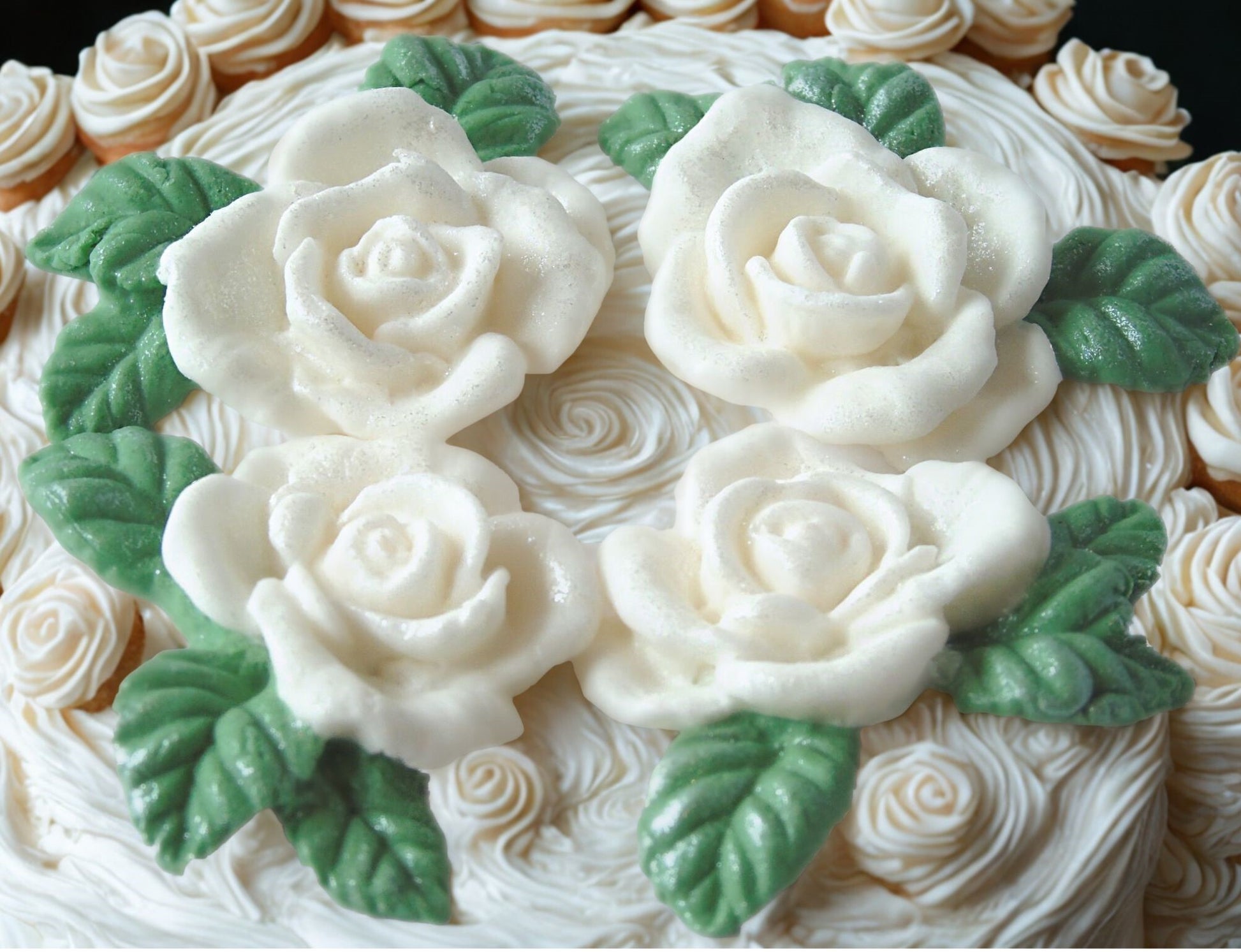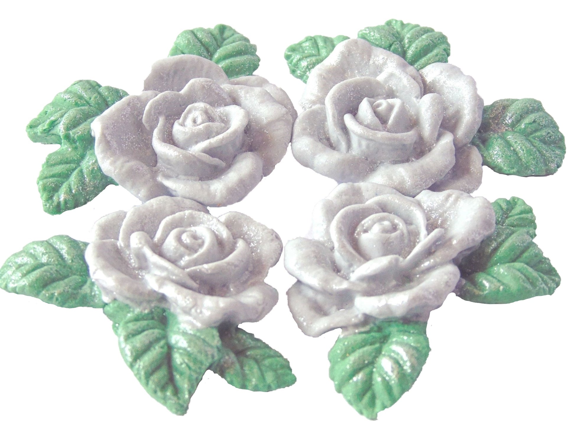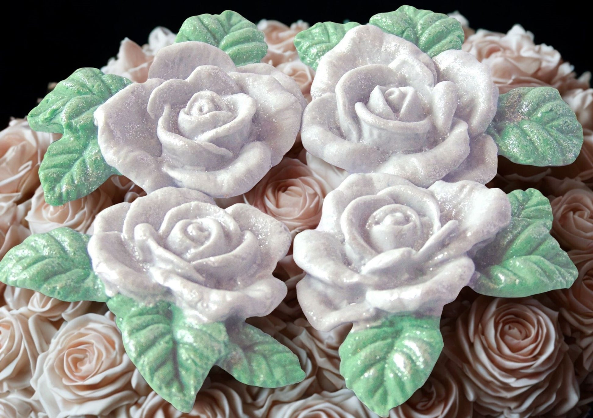Set 4 Glittered Rose Garland Wedding Edible Rose Toppers