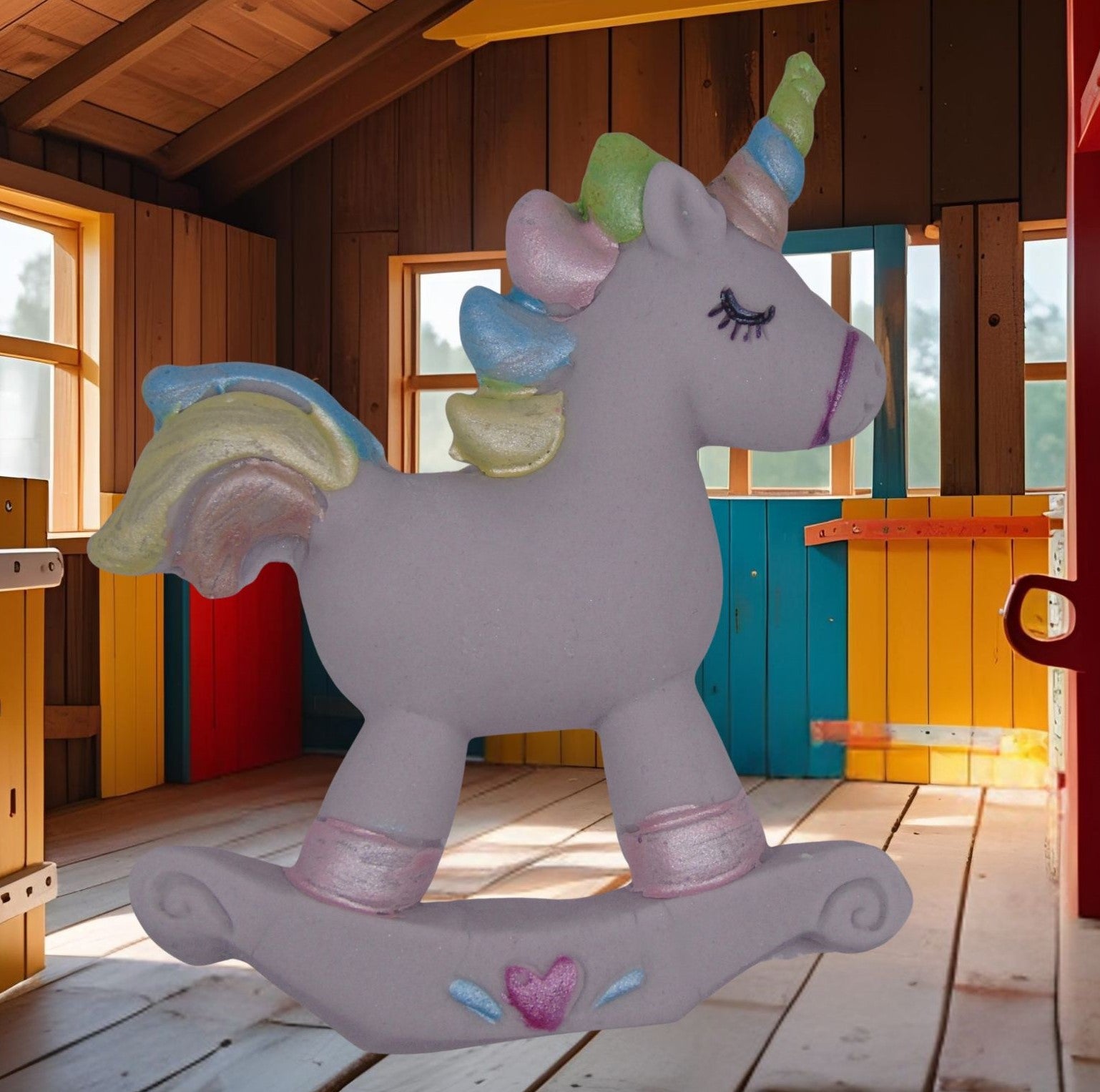 - Charming Unicorn rocking horse-shaped design